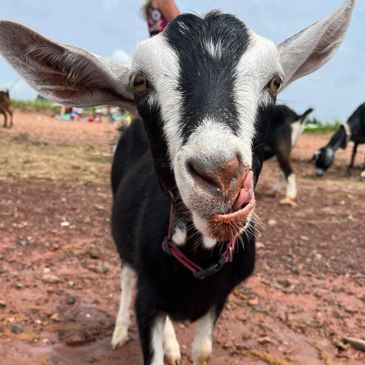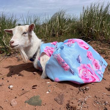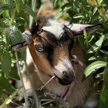 Ariel is the only standard size goat at Beach Goats. She is an alpine-nubian and quite the lady with her long ears and gentle personality. She is the perfect candidate for someone who is looking for a quirky goat who loves to go for walks, voice her opinion and eat.