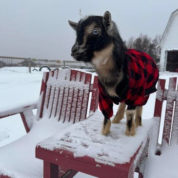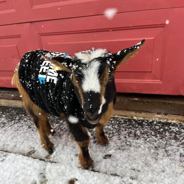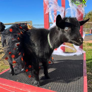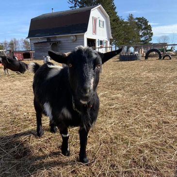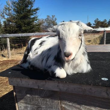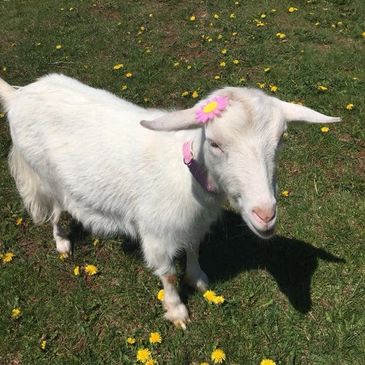 Although an adult, Tinkerbell is small like a baby and soaks up attention. She is independent and strong in the herd but melts over extra human attention. She often seeks people out for an extra cheek scratch or pat. Tinkerbell is perfect for someone wanting to share their time with a goat who is small and affectionate.